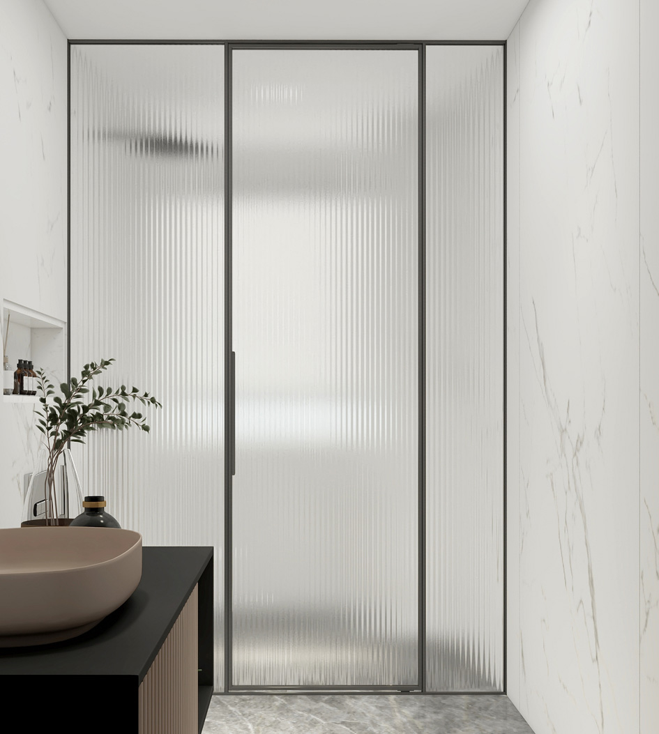 隱而不露,將極簡進(jìn)行到底,玻璃門隨角度變化而自動升降,同時內(nèi)外雙向開合,