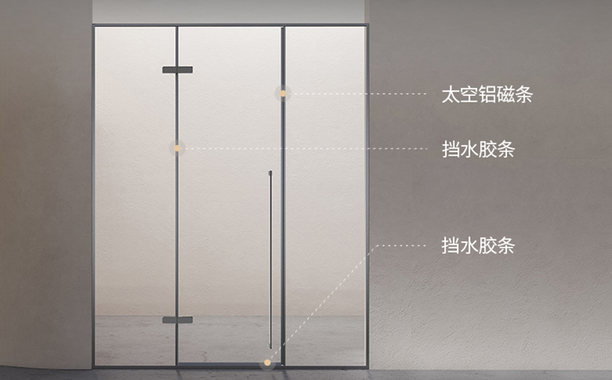 嚴(yán)密防水,更勝一籌。采用太空鋁磁條,保證磁條與型材同色,兼顧美觀和防水