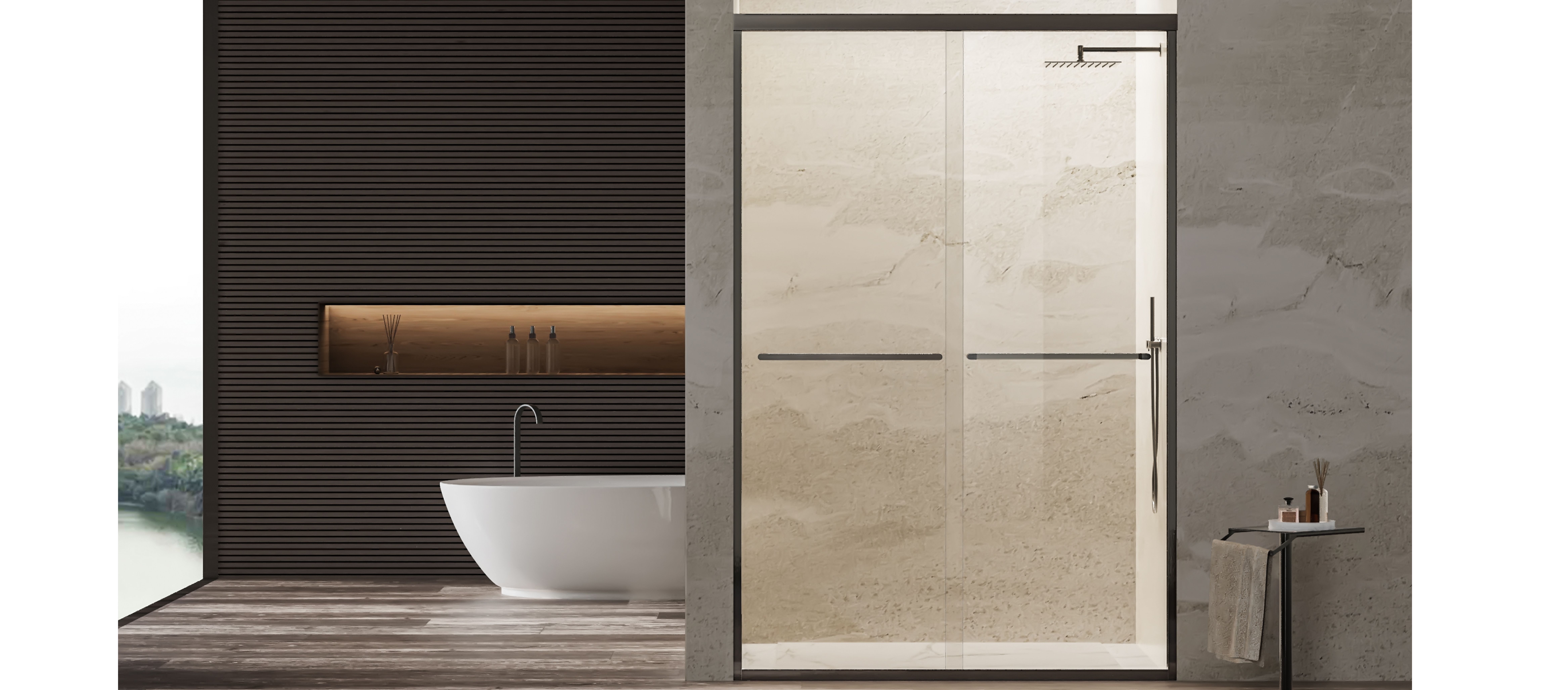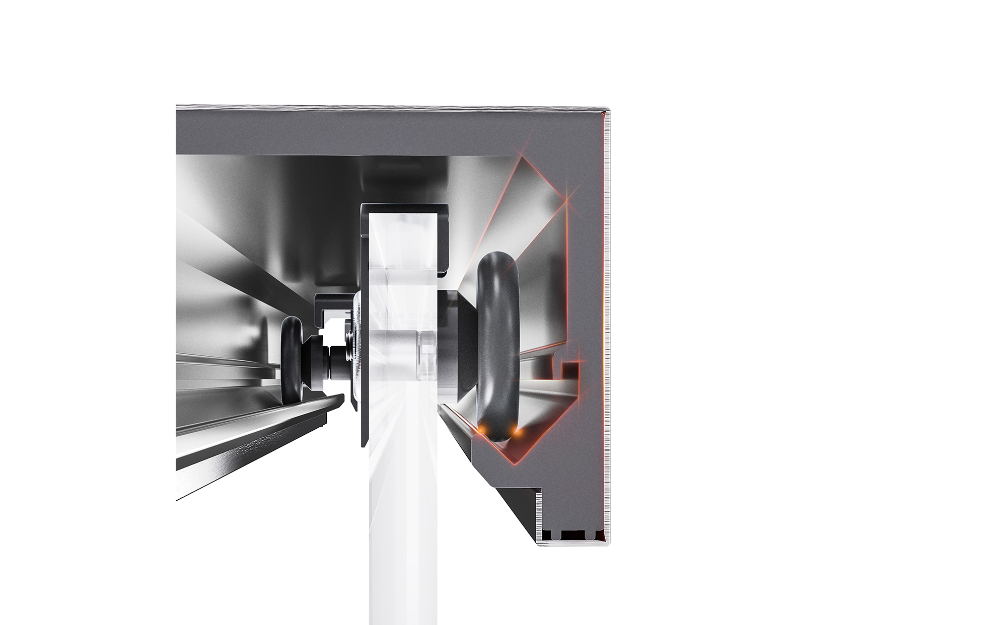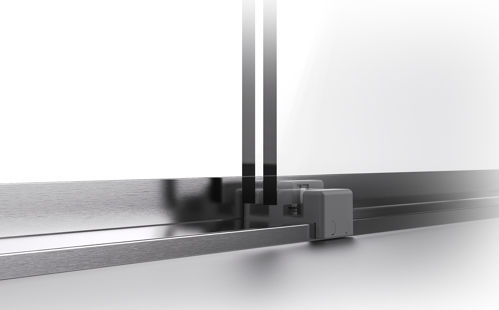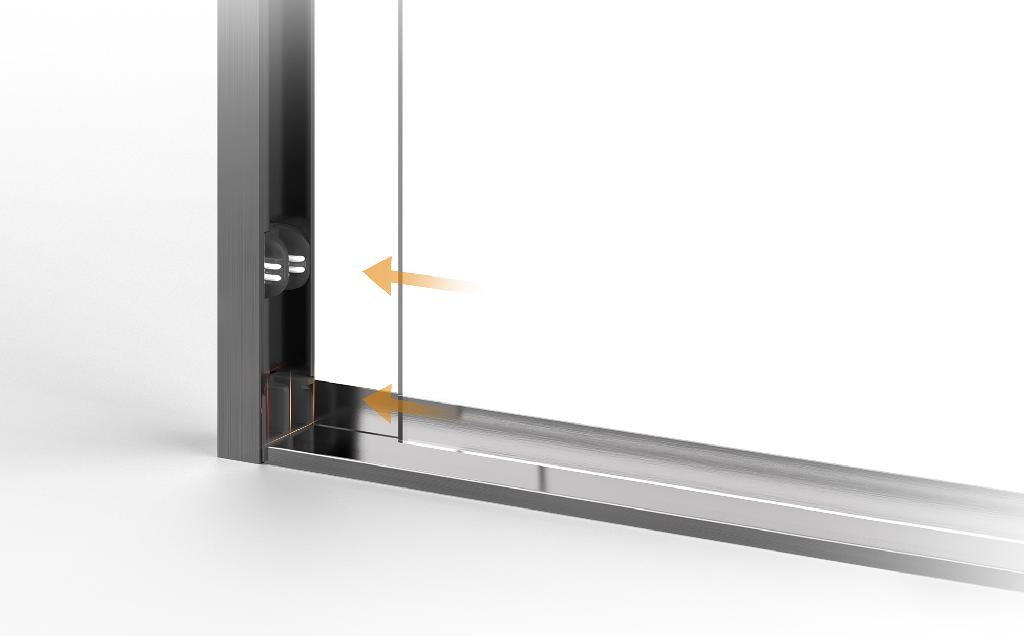 可調節中山字膠與導向防撞組件組合 玻璃沿軌道順暢運行,緩沖啟閉,安全靜音